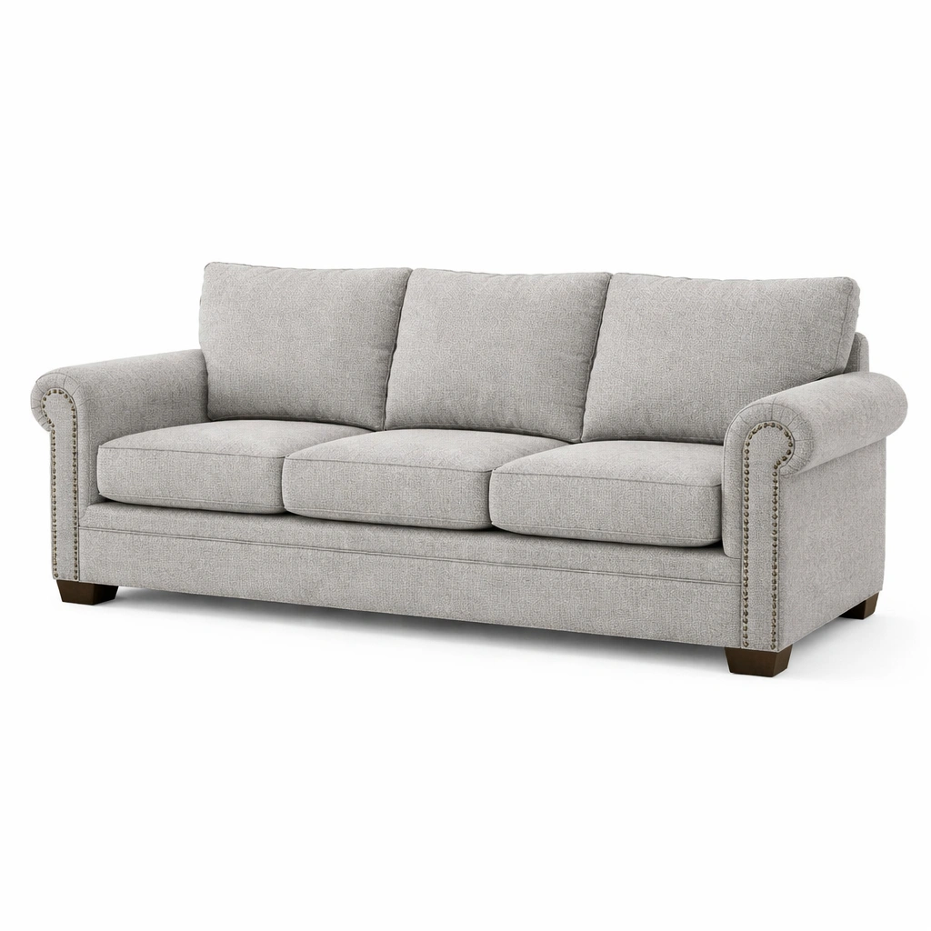 Sofá 3 plazas tela gris con estructura de madera de haya 220x95x85 cm